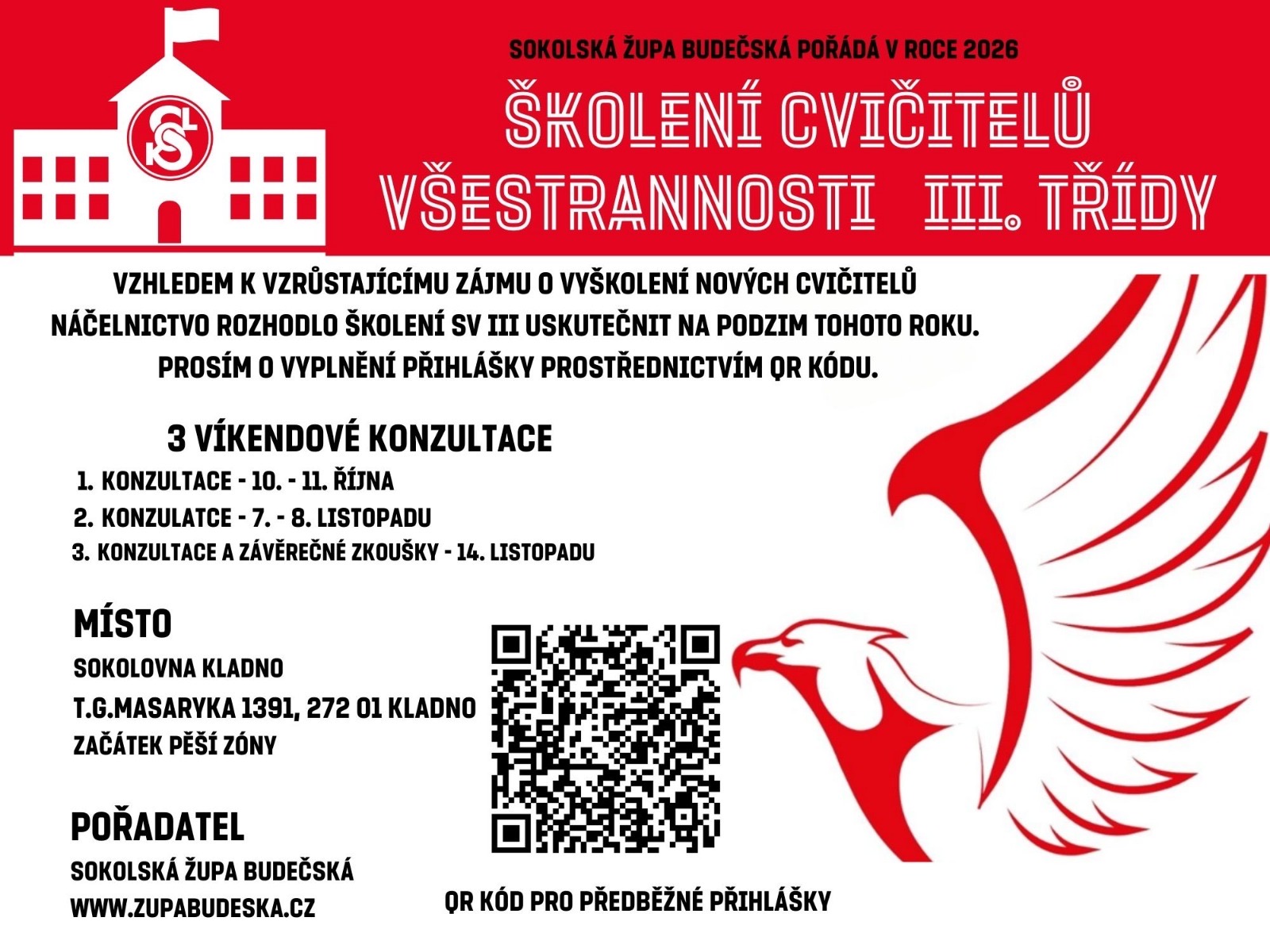 Vzhledem k vzrůstajícímu zájmu o vyškolení nových cvičitelů se náčelnictvo rozhodlo uskutečnit na podzim tohoto roku (říjen–listopad) školení SV III. Prosíme o vyplnění přihlášky, případně nahlášení zájemců Janě Kučerové (cucerka@seznam.cz), zatím stačí jednota, jméno a příjmení, email uchazeče o školení.