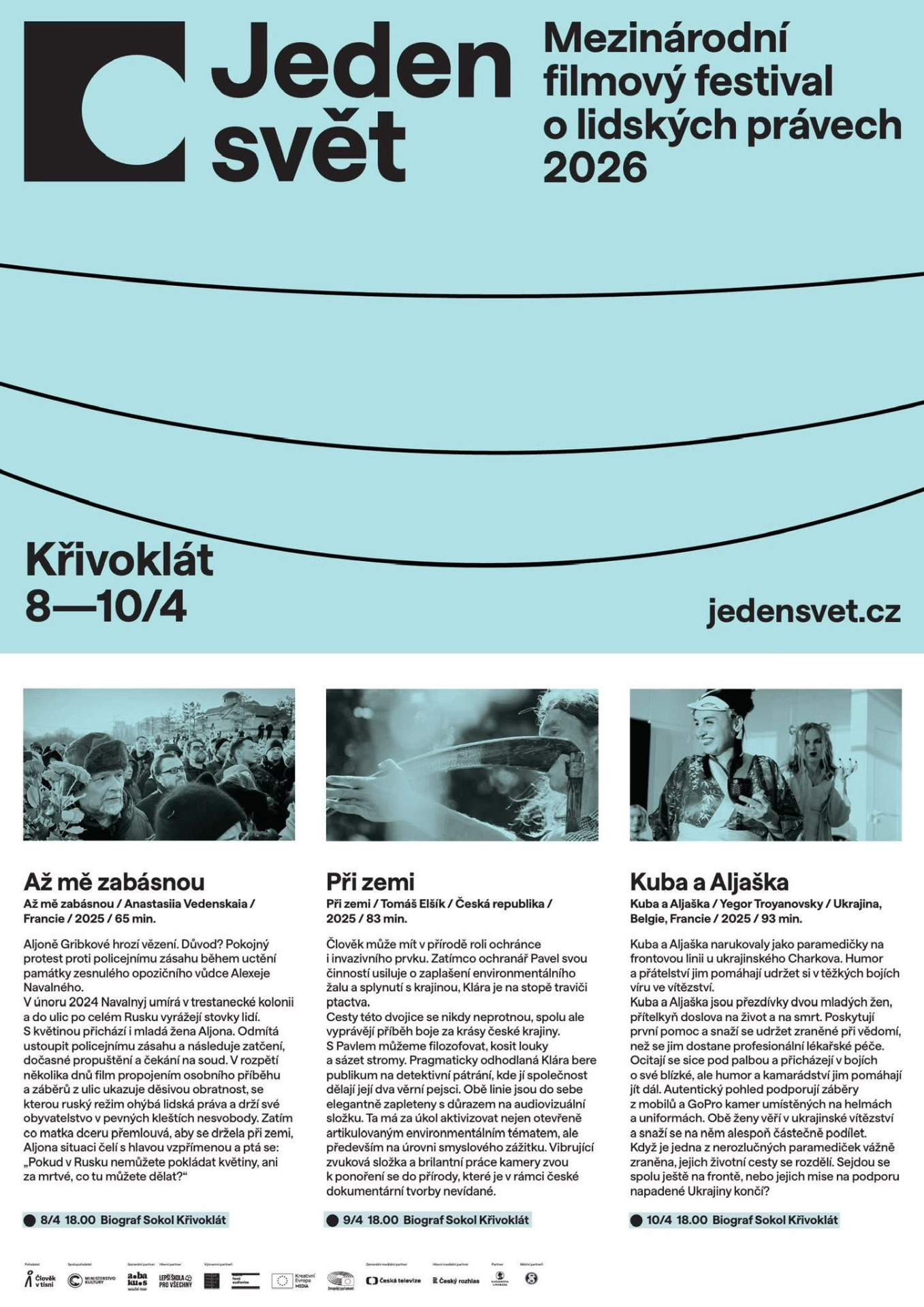 Zveme vás na projekce festivalu Jeden svět, který je největším filmovým festivalem dokumentárních filmů s tematikou lidských práv a letos poprvé se bude promítat i v křivoklátské sokolovně – tento týden od středy do pátku vždy od 18 hodin. V pátek od 21 hodin promítneme také oscarový dokument Pan Nikdo proti Putinovi.
