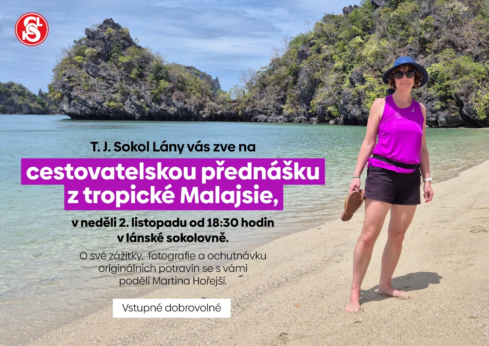 T. J. Sokol Lány pro vás v lánské sokolovně připravuje cyklus přednášek od lidí, kteří navštívili nějakou zajímavou zemi. Na první z nich se můžete těšit v neděli 2. listopadu od 18:30 hodin. O své zážitky, fotografie a ochutnávku originálních potravin se s vámi podělí Martina Hořejší. Vstupné je dobrovolné. Srdečně vás zveme!
