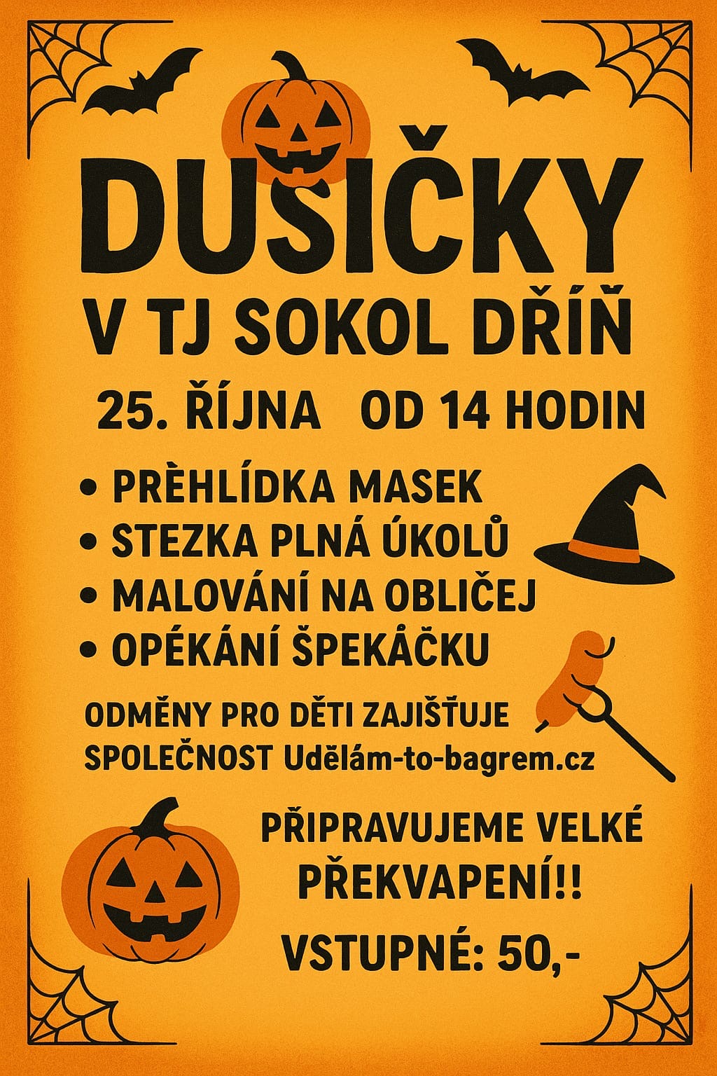 Zveme vás na tradiční podzimní akci plnou kouzelné atmosféry a zábavy pro celou rodinu! Už za týden v sobotu 25. října od 14:00. Můžete se těšit na přehlídku roztomilých i strašidelných masek, malování na obličej, dobrodružnou stezku plnou úkolů a opékání špekáčků. Navíc připravujeme velké překvapení!