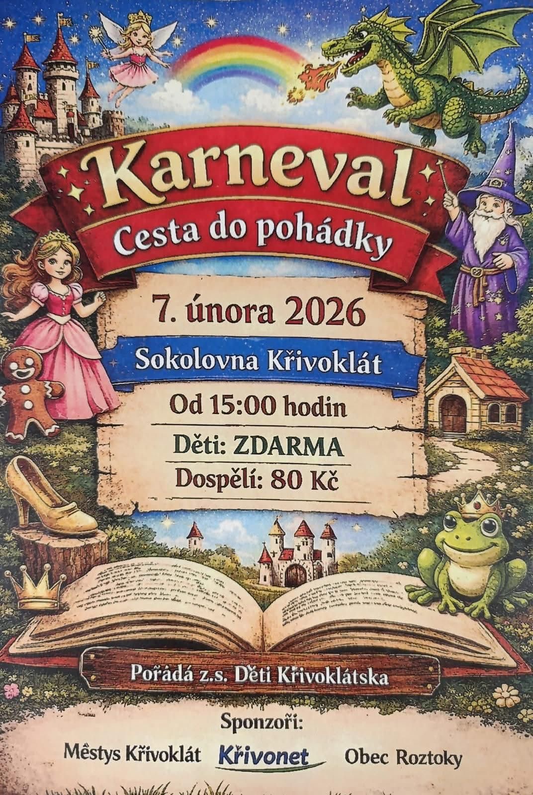 Zveme všechny malé i velké na sobotní pohádkový karneval do sokolovny Křivoklát. Začínáme v 15:00, vstupné pro děti je zdarma, pro dospělé 80 Kč. Těšíme se na všechny krásné kostýmy a masky!