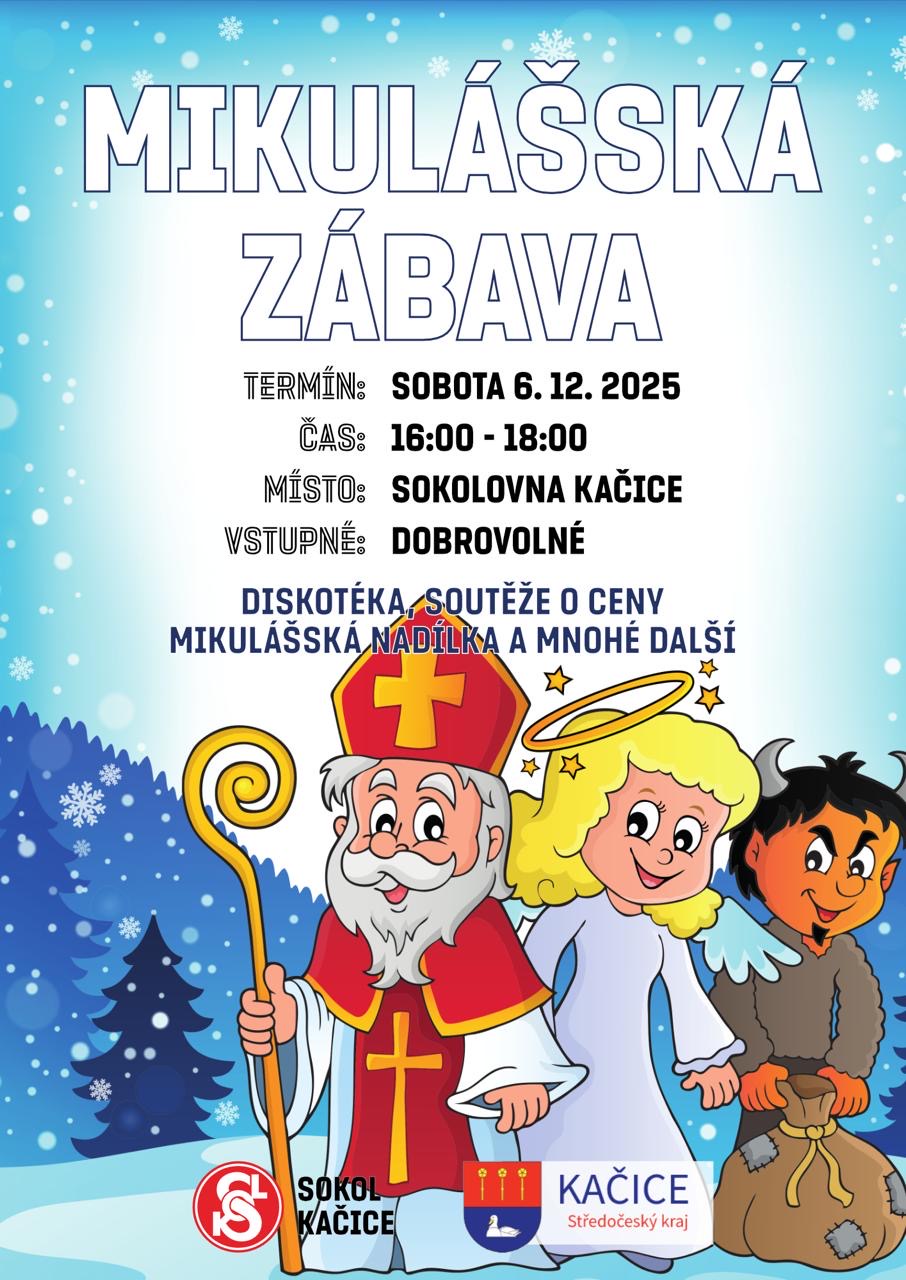 Na tuto sobotu 6. prosince jsme pro vás od 16:00 do 18:00 v sokolovně Kačice připravili mikulášskou zábavu s diskotékou, soutěžemi o ceny, mikulášskou nadílkou a mnohým dalším. Vstupné dobrovolné.