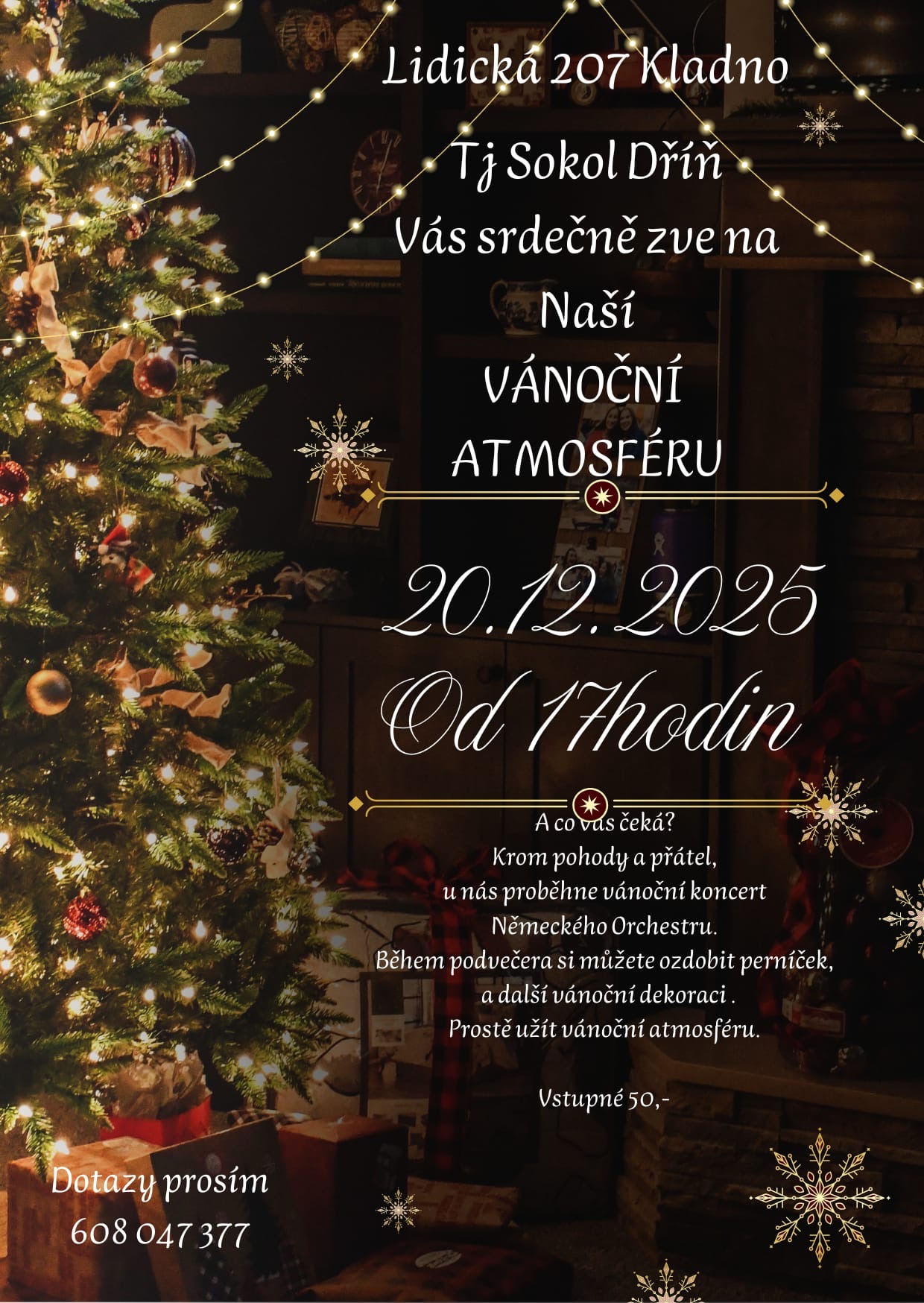 Přijďte si užít vánoční atmosféru s TJ Sokol Dříň!