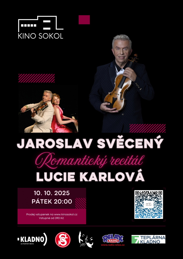 Přijďte si v pátek 10. října od 20:00 zpříjemnit večer do Kina Sokol v Kladně na koncert, který je doslova nabitý pozitivní energií. Skladby 19.–21. století plné emocí a virtuosity vám představí Jaroslav Svěcený a klavíristka Lucie Karlová. Koncert je uspořádán u příležitosti Památného dne sokolstva, který si pravidelně připomínáme 8.října.