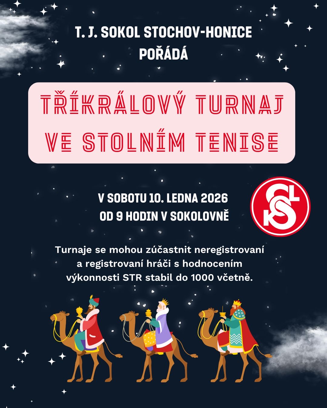 T. J. Sokol Stochov-Honice pořádá tříkrálový turnaj ve stolním tenise